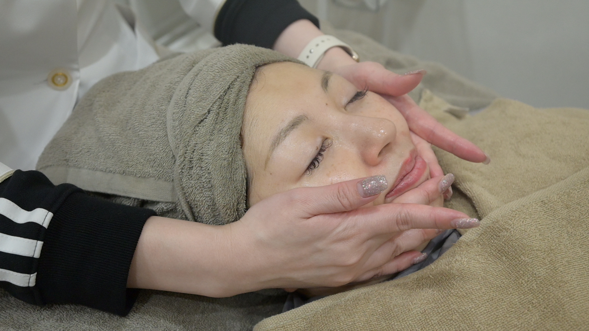肌の変化を感じていただく瞬間。